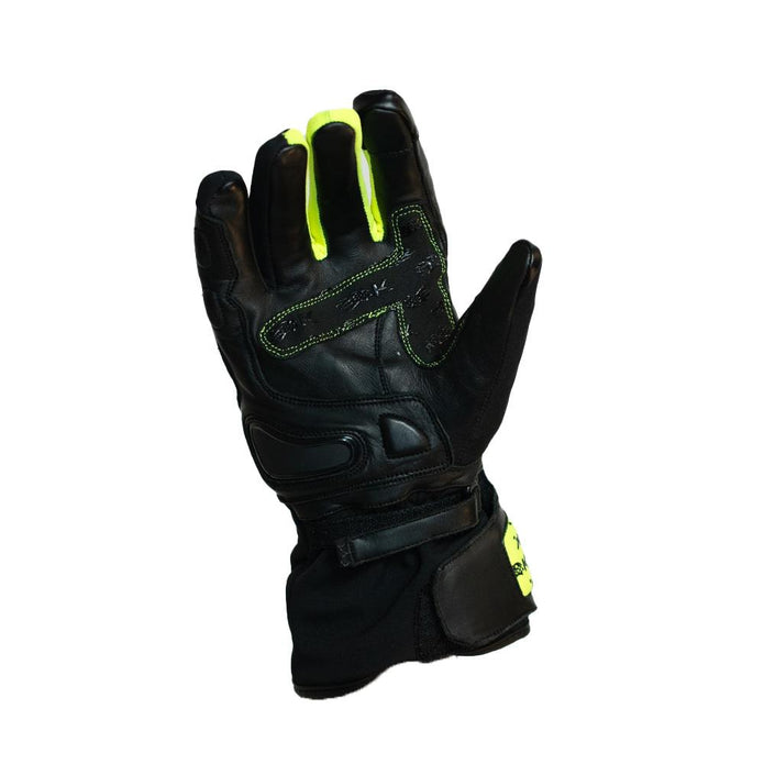 Guantes de moto fabricado en cuero anilina combinado con Soft-Shell transpirable e impermeable, con protección moldeada de TPU, TPR y cuero. Compatible con pantallas táctiles gracias a su acabado especial en el dedo. Incorpora membrana impermeable, malla de aire con espuma de tacto suave y ventilación con punta TPU. Protección integral en nudillos y dedos mediante refuerzos moldeados. Alta visibilidad nocturna gracias a detalles reflectantes. Palma con doble refuerzo antideslizante, cierre con velcro y detalles de marca en transferencia térmica reflectante.